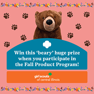 The mascot for the 2025 Girl Scout Fall Product Program is the Grizzly Bear. Also referred to as the North American Brown Bear or the Zia the Grizzly Bear, this animal symbolizes the program's "Brave, Fierce, and Fun" theme. Girl Scouts participating in the program will learn about grizzly bears and have the chance to earn plush toys, with some councils offering a chance to name the bear.